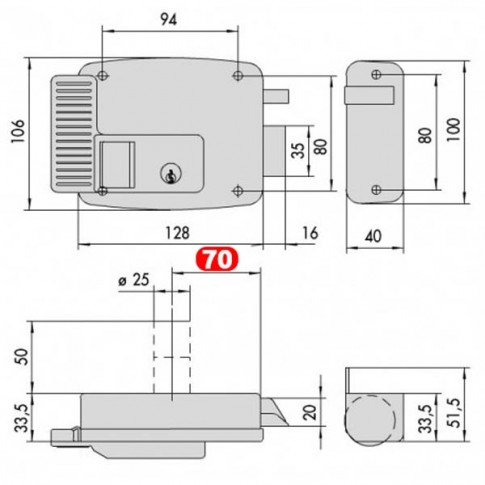 Serrure électrique en applique pour ouverture à gauche. Cylindre de 70mm haute sécurité fourni avec 3 clés (pour ouvrir la porte de l'extérieur ou condamner l'ouverture de l'intérieur). Avec Brico-direct vous avez la garantie d'un produit ORIGINAL et non pas de contrefaçon !!