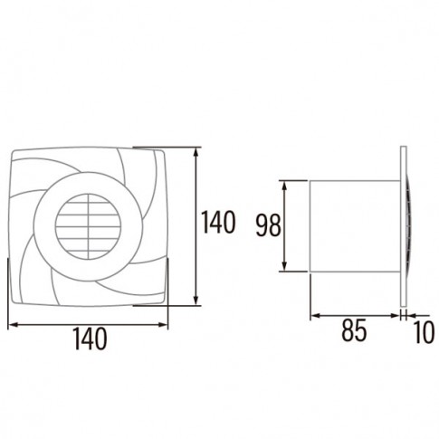 Ventilateur extracteur de Salles de bain de 100mm de diamètre. Pour tubes de 100mm. Peut être installé sur un mur ou au plafond.