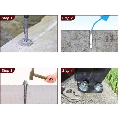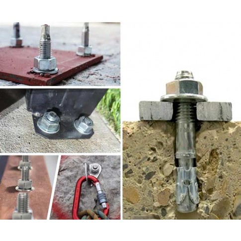Goujon métallique galvanisé utilisé pour l'ancrage dans le béton. Rondelle DIN 125 et écrou DIN 934