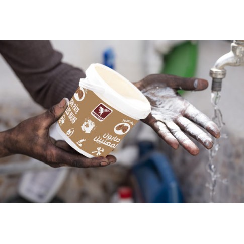 Savon pâte avec Microbilles pour le nettoyage des mains très sales (mécanique, industrie, agriculture, etc.). Parfumé à l'amande.