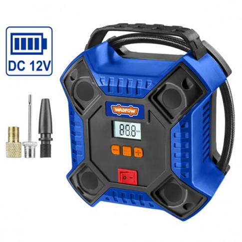 Mini compresseur qui se branche sur une prise d'allume cigare 12V. Doté également d'un ecran de contrôle LCD et d'une torche de lumière LED !! Pression max de 11 Bars (160 PSI) et un débit de 35 L/min. Idéal pour des gonflages d'appoints (pneu à plat au milieu de la route, pneus des deux roues, matelas gonflables, ballons de foot, etc.)