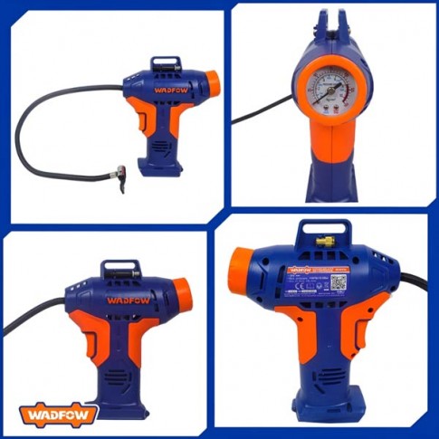 Mini compresseur fonctionnant à batteries 20 Volts PS20 (Non inclus) . Doté également d'un écran de contrôle analogique. Pression max de 10.5 Bars (150 PSI) . Idéal pour des gonflages d'appoints (pneu à plat au milieu de la route, sorties VTT, matelas gonflables, ballons de foot, etc.) La batterie de type PS20 est compatible avec tous les appareils PS20 des marques WADFOW, TOTAL, EMTOP et INGCO. Achat idéal si vous possédez déja des appareils sans-fils compatibles.