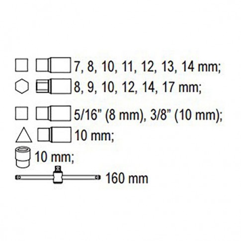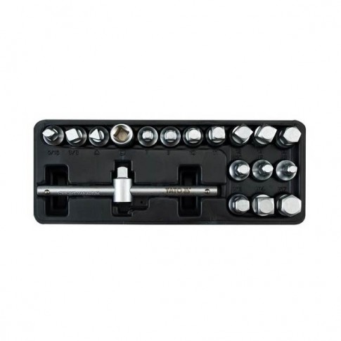 Ensemble de 17 douilles pour vidange adaptées à différentes formes de bouchons de carter. Inclut une clé de serrage
