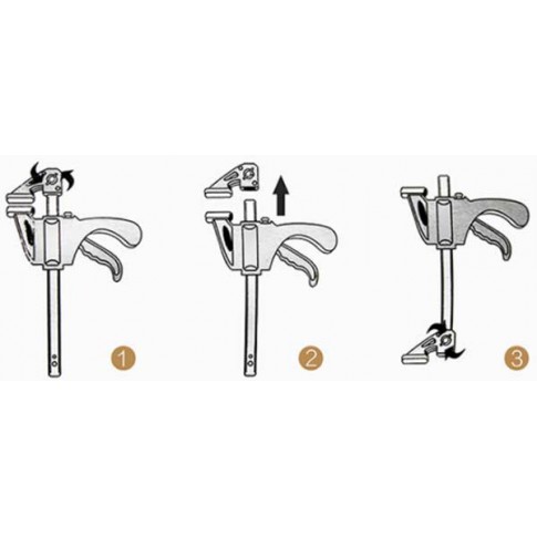 Serre-joint une seule main permettant un serrage rapide, sûr et confortable d’une seule main. Maniement très simple grâce à une poignée ergonomique à zone antidérapante. Tige métallique de haute qualité qui assure une force de serrage élevée et de longue durée desserrage très facile grâce à un effet levier optimal. Corps en plastique très robuste. Ecartement maximal: 600mm