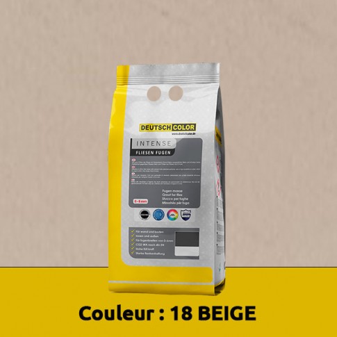 Mortiers pour joints de carreaux de couleur "18 BEIGE " disponible en Tunisie. Conçu pour les zones humides (salles de bains, Hammams, etc.) et piscines ainsi que les zones soumises aux dilatations (Chauffage par le sol. terrasses extérieures, etc.) Remplit les joints de largeur jusqu'à 8mm.