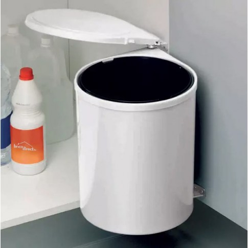 Poubelle qui se fixe à la porte du meuble de cuisine. Ouverture par en haut en plastique. Ouverture automatique de la poubelle en ouvrant la porte du meuble. Ce produit peut être logé en meubles ayant une largeur minimale de 400mm. Feuille-Gabarit de vissage et visserie incluse.