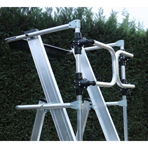 Les plates-formes individuelles roulantes permettent une protection 360° de l'opérateur. Le réglage de la hauteur et le verrouillage s'effectuent par poignées latérales, pratiques et ergonomiques. L'adaptation à tous types de sols est possible grâce aux stabilisateurs. L'opérateur peut déplacer la plateforme repliée très facilement grace aux roulettes.