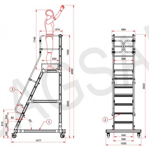 Les plates-formes individuelles roulantes permettent une protection 360° de l'opérateur. L'opérateur peut déplacer la plateforme repliée très facilement grace aux roulettes qu'on peut bloquer pour une sécurité parfaite!
