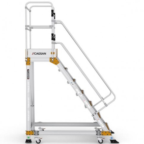 Les plates-formes industrielles en aluminium SPRINGO ont un système de freinage à ressort qui garantit une utilisation sûre en immobilisant la plateforme lorsque l'usager monte dessus. Lorsqu'il descend de la plateforme, il peut déplacer le produit facilement grâce à ses roues.