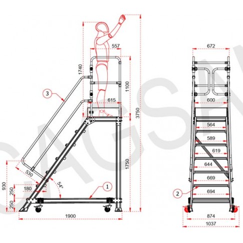 • Permet d'atteindre une hauteur de travail de 3.7m max