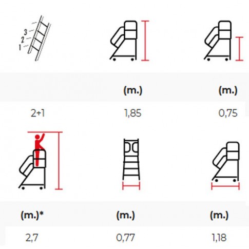 • Permet d'atteindre une hauteur de travail de 2.70m max