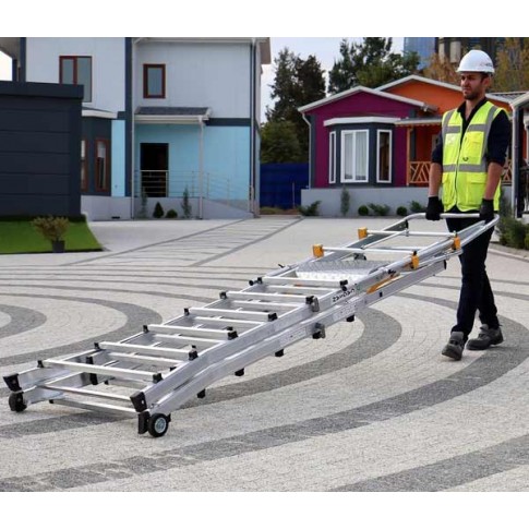 La plateforme peut être déplacée facilement par un seul opérateur grâce à ses roues arrières.