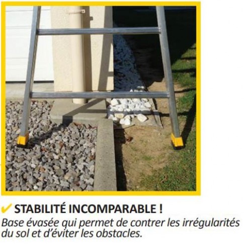 Selon votre besoin, l'échelle T2 peut s’utiliser en trois positions: échelle simple téléscopique, escabeau et en dénivelé (deux surfaces d'hauteurs différentes.