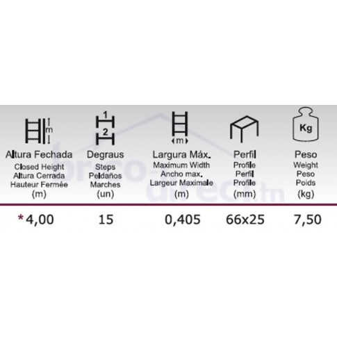 Echelle simple en aluminium 15 marches. pieds munis de sabots anti-dérapants. Profils en Aluminium pour un poids total de 7.5 Kg.