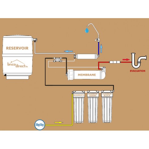Afin d'éviter d'utiliser l'eau filtrée pour les tâches ménagères (vaisselle, etc.) il est conseillé d'installer un deuxième robinet sur votre évier et qui sera dédié à l'eau filtrée