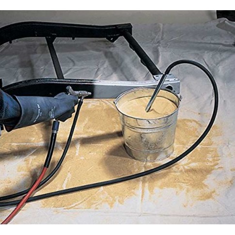 Pistolet pour sablage: L'allié idéal pour: élimination de la rouille, de la peinture, des saletés incrustées ou préparation de pièces avant peinture. Le flexible est plongé dans un récipient contenant le sable.
