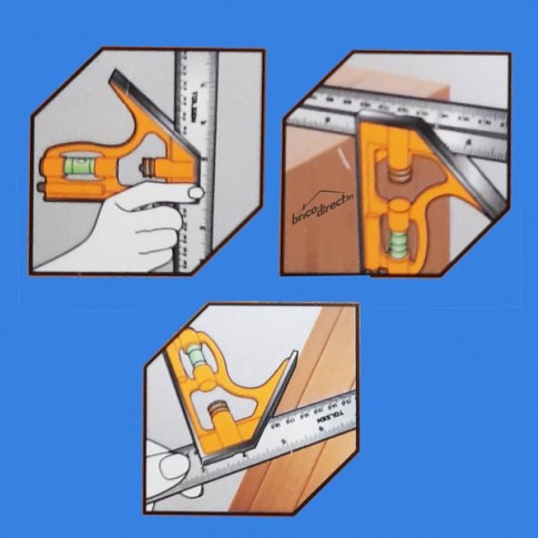 Equerre combinée aux utilisations multiples. Angles de 45° et 90°. Niveau à bulle pour la mise à niveau et le contrôle de la planéité. En Inox et en Aluminium. Règle de 300mm