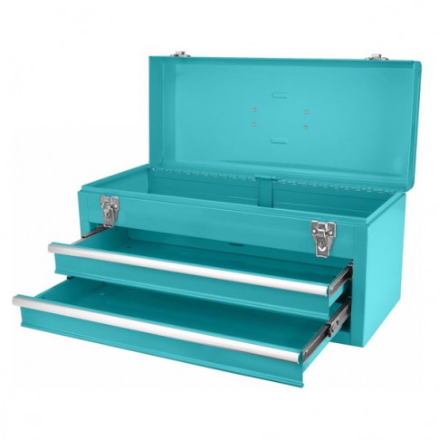 Caisse à outils métalllique à 2 tiroirs coulissants pour professionnels. Fermeture à clés. Poignées et fermoirs en métal pour une longue durabilité.