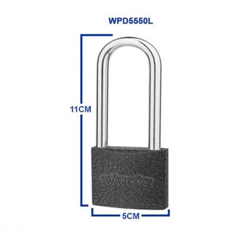 Cadenas long en fer gris de 50mm de largeur. Cylindres en laiton. Fourni avec 3 clés