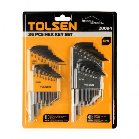 Jeu de 36 clés mâles HEX longues (Appelées aussi Clés ALLEN) noires en métrique et également en impériale (en pouces)