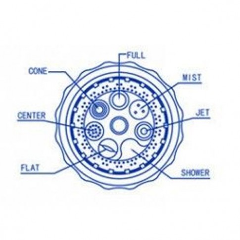 Pistolet d'arrosage confortable et ergonomique avec poignée antidérapante. Levier d'ouverture et de fermeture avec verrouillage de flux d'eau. Réglage de Jet en 7 types: