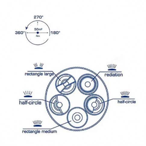Arroseur à poser avec 5 formes de jets différents. La sélection de la forme du jet se fait par rotation du cadran. Couvre une superficie ayant un diamètre max de 8m.