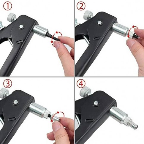 Pince adaptée au sertissage des écrous aveugles (inserts). Livrée avec 40 écrous . Les écrous aveugles (qui sont filetés à l'intérieur) sont très utiles pour créer des points de fixation filetés sur les panneaux métalliques, la carrosserie de véhicules, vélos, 4x4, meubles métalliques, décoration, etc.