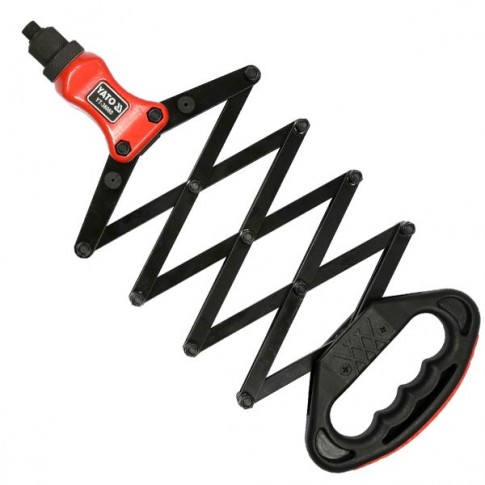Riveteuse professionnelle extensible en Accordéon de longueur 810mm. Forme ergonomique réduisant l'effort nécessaire pour riveter. Pour rivets (Acier/Alu ou inox) de dimensions: 2.4mm, 3.2mm, 4.0mm, 4.8mm, 6mm et 6.4mm.