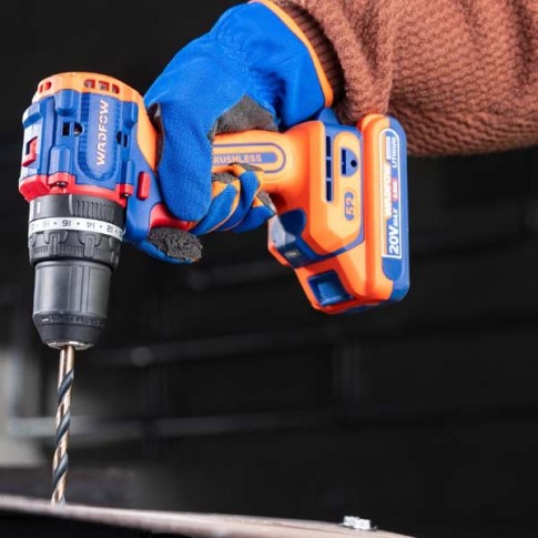 Perceuse-visseuse à percussion livrée avec deux batteries Li-Ion 2Ah 20V. Permet de visser, et percer dans la maçonnerie, l'acier et le bois.. Brushless : Sans charbons pour plus de robustesse! Vitesse variable pour une contrôle total du vissage. Lumière LED pour plus de précision. 22 positions de couple + 2 position de perçage. Inclut une Valise de transport et 4 accessoires